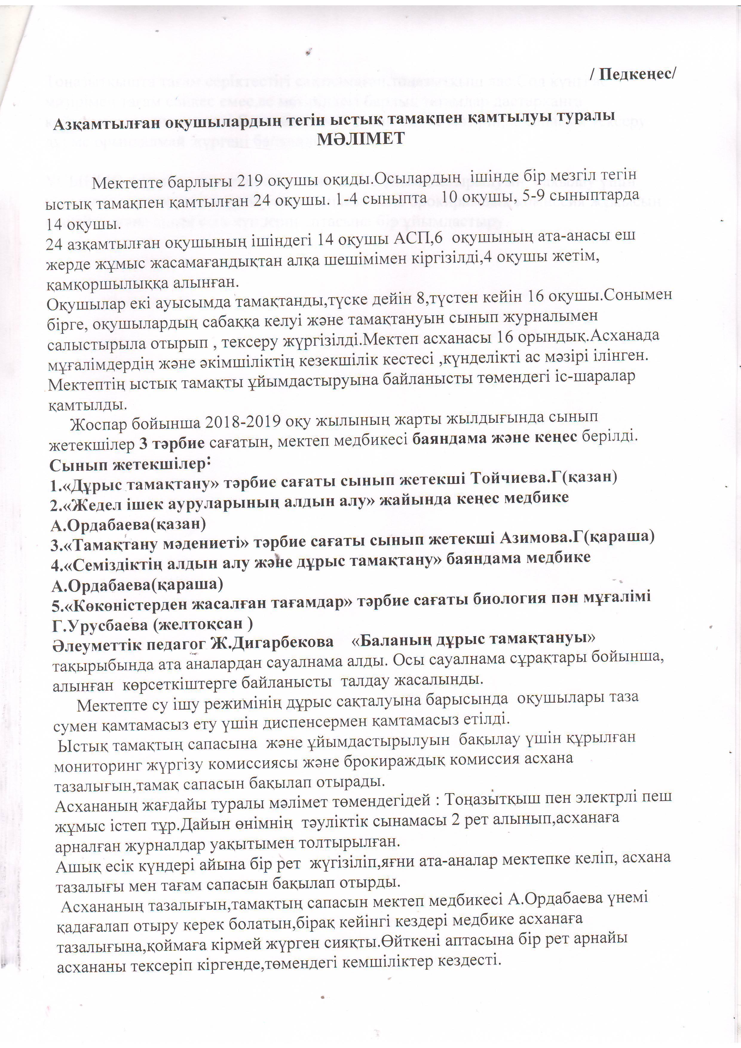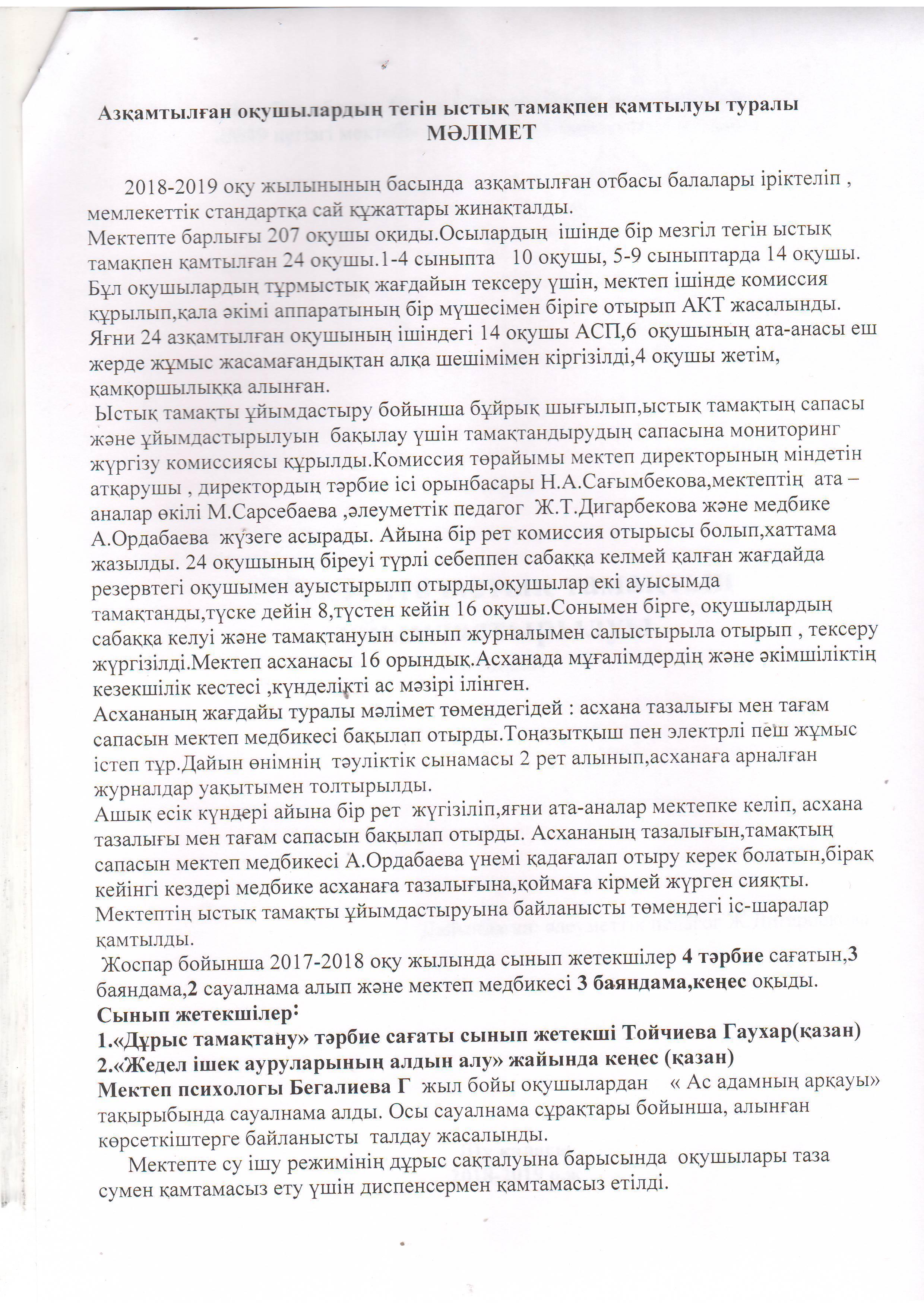 Ыстық тамақты ұйымдастыру » Ілияс Жансүгіров атындағы бастауыш мектеп