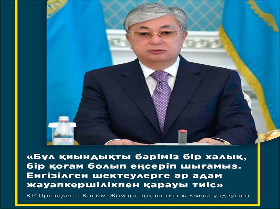 •Қазіргі уақытта елімізде болып жатқан жағдай барлығымызға қиындық туғызып жатқаны баршаңызға аян.