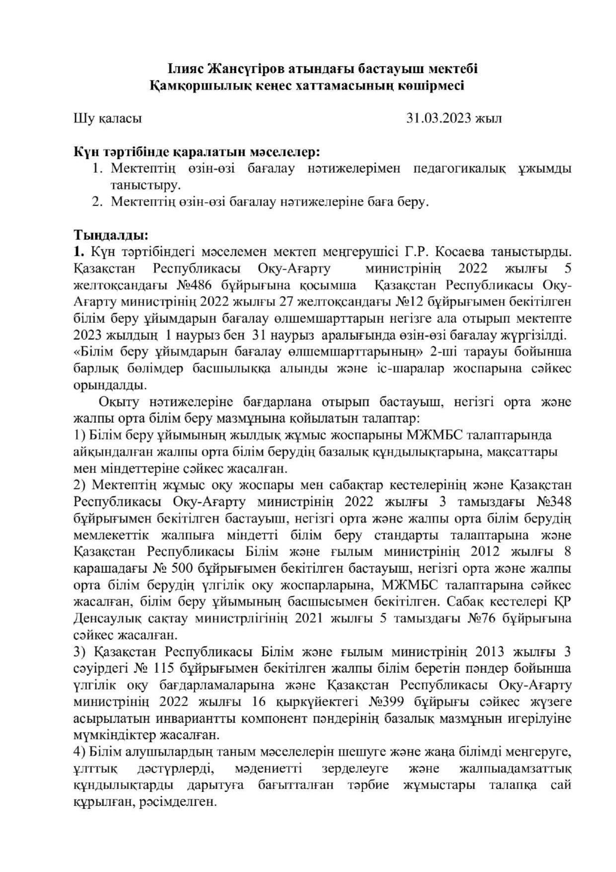 Қамқоршылық кеңес хаттамасы » Ілияс Жансүгіров атындағы бастауыш мектеп